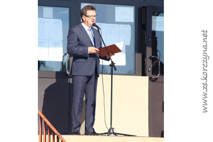 Dyrektor ZS wyraził nadzieję, że rozpoczynający się rok szkolny upłynie w miłej, pełnej współpracy atmosferze oraz będzie obfitował w liczne sukcesy na płaszczyźnie dydaktycznej oraz wychowawczej. Zwrócił uwagę, że wśród trzech oddziałów klas I gimnazjum nowością jest klasa językowa, oferująca zwiększoną liczbę lekcji języka angielskiego. Nadmienił również o istotnej i potrzebnej inwestycji , jaką jest budowa parkingu szkolnego, który znacznie usprawni komunikację w okolicy budynku szkoły. Pan dyrektor nawiązał także do smutnego wydarzenia w polskiej historii, a mianowicie kolejnej rocznicy wybuchu II wojny światowej.