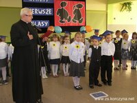 Po powitaniu zaproszonych gości uczniowie klas pierwszych zaprezentowali ciekawy program artystyczny, przygotowany pod kierunkiem wychowawców. Najważniejszym jednak przeżyciem dla każdego pierwszaka było ślubowanie i pasowanie na ucznia, dokonane przez dyrektora Artura Stodolaka. Pamiątkowe dyplomy i upominki wręczyły dzieciom: pani wicedyrektor Dorota Półchłopek-Pleban, wychowawcy klas- Renata Brzezińska, Jadwiga Pelczar, Anna Wajda oraz siostra katechetka Anna Macina. Na zakończenie uroczystości wykonano pierwszakom pamiątkowe zdjęcia i zaproszono na słodki poczęstunek.