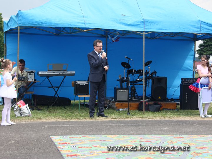 Festyn otworzył dyrektor ZS w Korczynie - Artur Stodolak - przedstawiając liczne atrakcje oraz zapraszając do wspólnej zabawy. Piknik zaszczycił swoją obecnością wicestarosta powiatu krośnieńskiego - Adolf Kasprzyk.