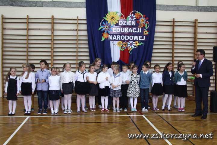 Uroczystą akademię rozpoczął dyrektor szkoły – Artur Stodolak, który powitał przybyłych gości, wśród nich Jana Zycha – wójta gminy Korczyna, Andrzeja Ginalskiego – kierownika Gminnego Ośrodka Ekonomiczno – Administracyjnego Szkół, księdza proboszcza Edwarda Sznaja oraz całą społeczność szkolną.