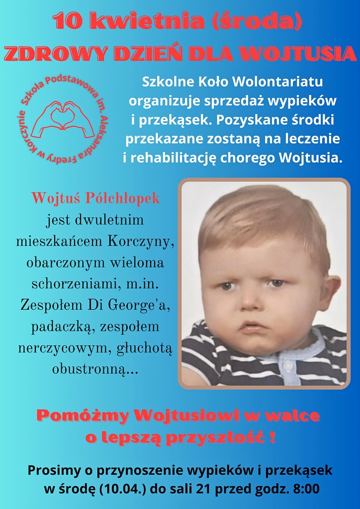 Szkolne Koło Wolontariatu – pod opieką Alicji Pudło i Ewy Sikory – zorganizowało "Zdrowy Dzień", z którego dochód, w kwocie 1500 złotych, ma wspomóc rehabilitację i leczenie chorego Wojtusia.