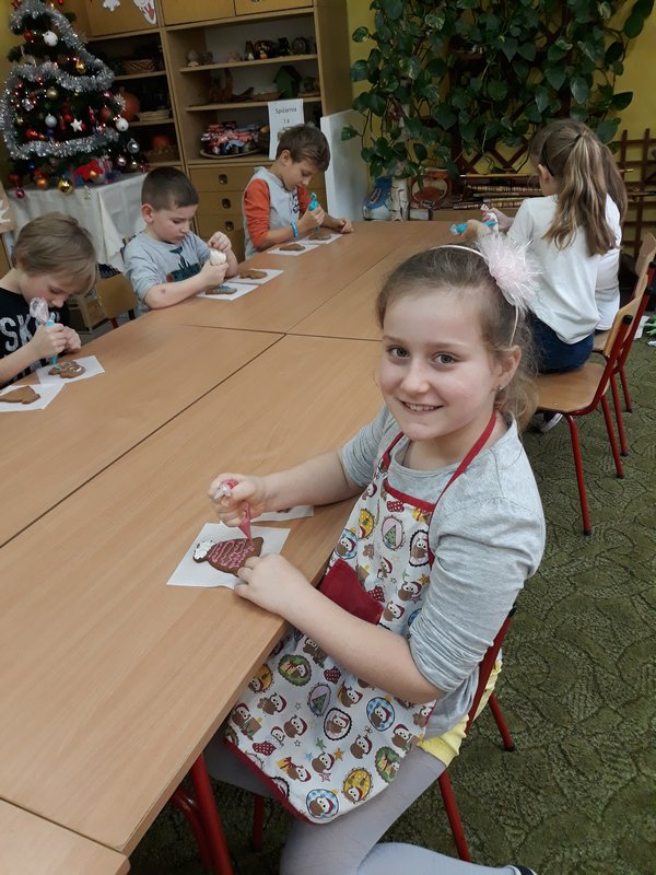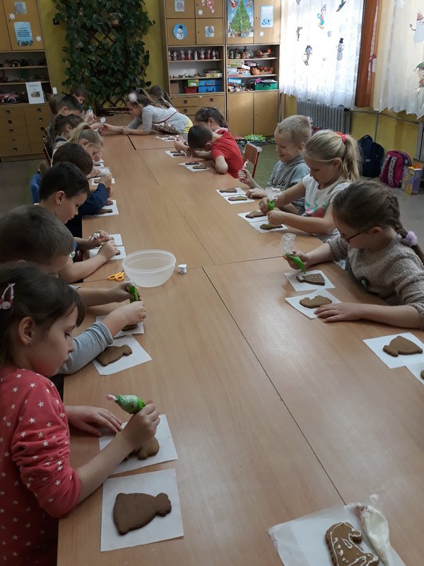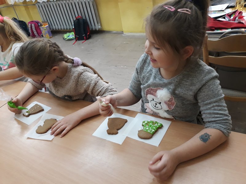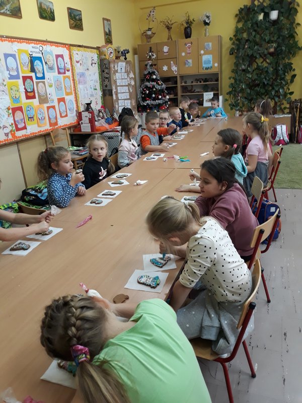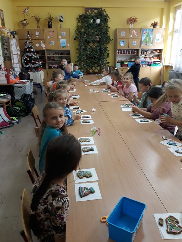 Święta tuż, tuż, a w naszej salach pachnie bożonarodzeniowymi słodyczami. Dnia 17.12.2019 w szkole uczniowie klas I-III dekorowały świąteczne pierniczki, które pojawią się na wigilijnym stole lub zawisną na choineczkach .