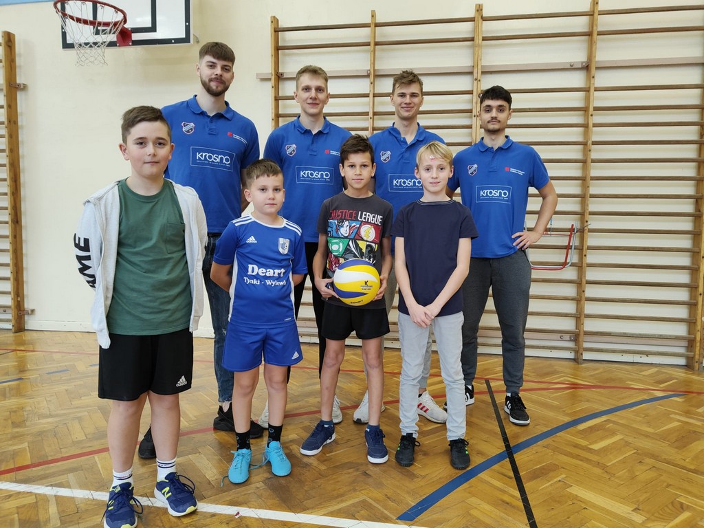 7 grudnia sportowcy z naszej szkoły, ci mali i ci więksi, mieli możliwość trenowania wspólnie z siatkarzami reprezentującymi Krośnieńskie Stowarzyszenie Siatkówki Karpaty Krosno. To była cenna lekcja i świetna zabawa.