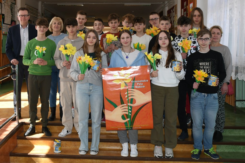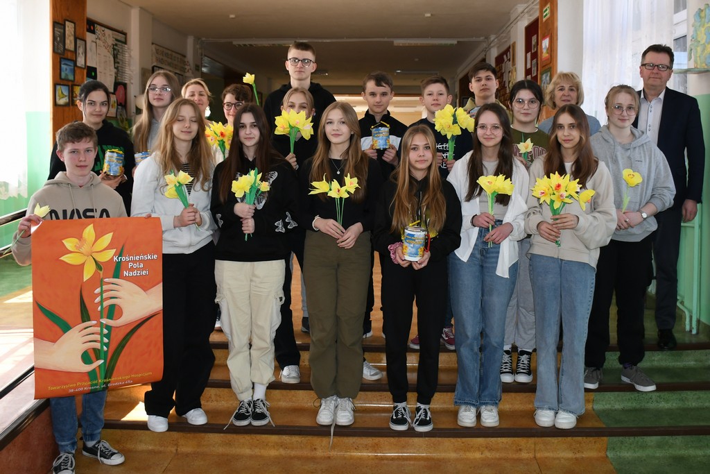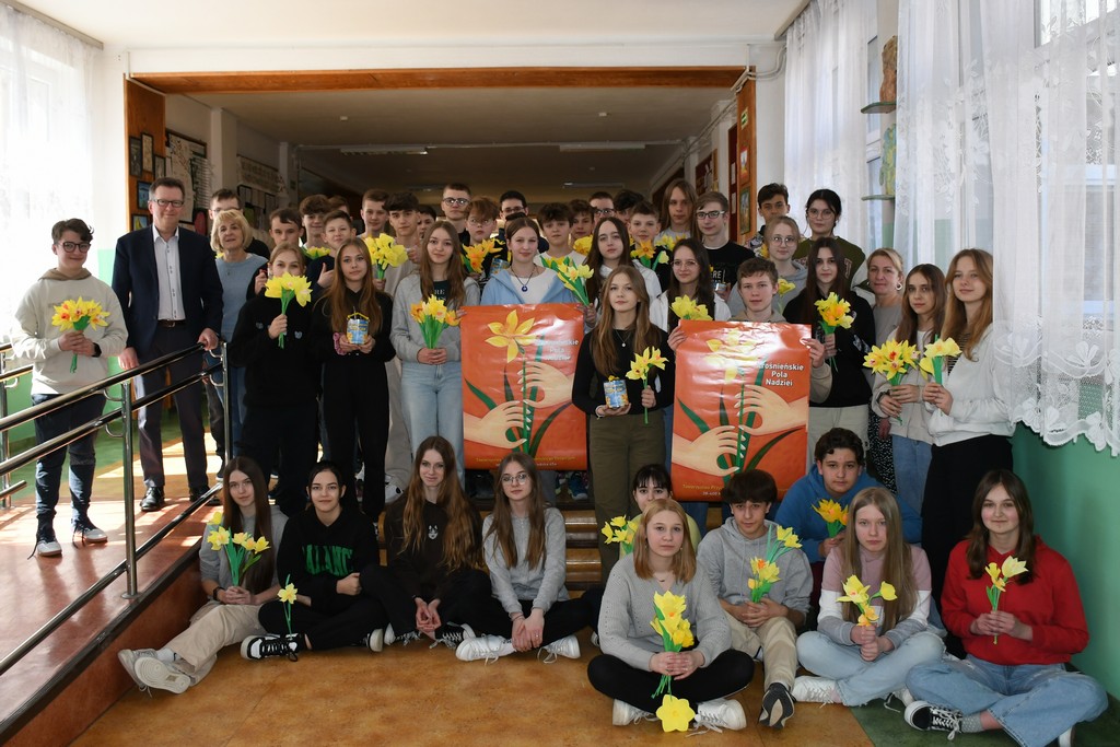 W ramach działań wolontariackich uczniowie naszej szkoły wykonali piękne żonkile, które rozprowadzone zostały wśród mieszkańców Korczyny 2 kwietnia - w Niedzielę Palmową. Jak co roku korczyńska społeczność chętnie włączyła się do akcji. Puszki wolontariuszy – uczniów klas ósmych - szybko zapełniły się wolnymi datkami, a każdy darczyńca otrzymał wykonany przez naszych uczniów żonkil, przypominający o ludziach cierpiących i czekających na wsparcie.
