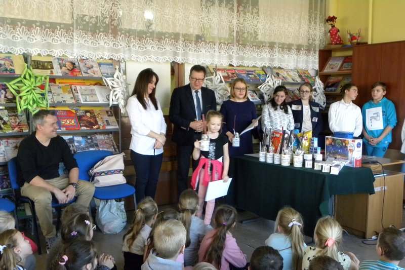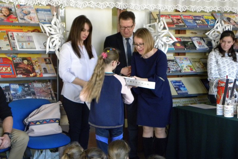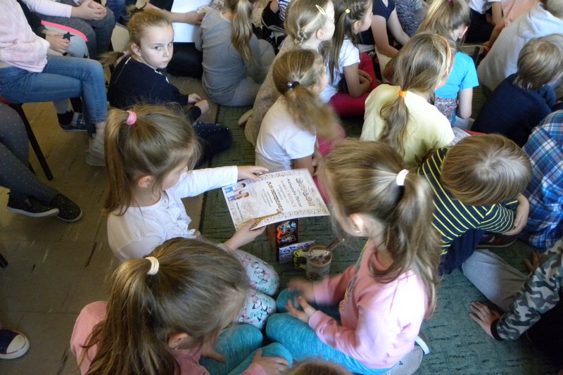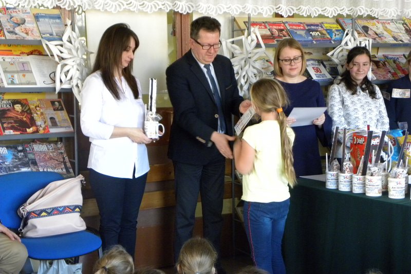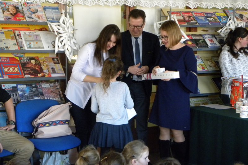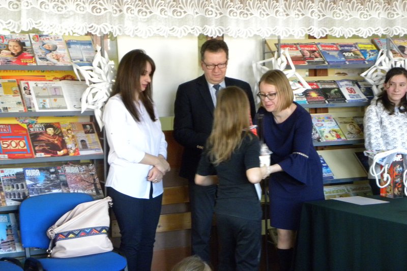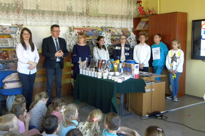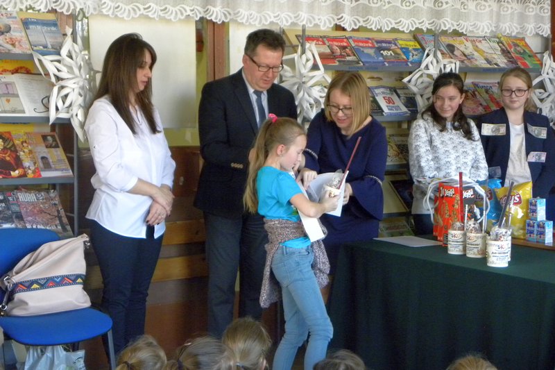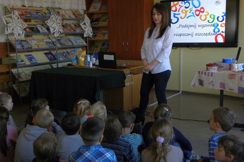 Słowa skierowane do uczniów podczas rozdania nagród przez dyrektora szkoły Artura Stodolaka oraz panią Małgorzatę - pracownika banku PKO BP na długo pozostaną w pamięci wszystkich zgromadzonych. Wszyscy słuchaliśmy o realizowaniu marzeń,co można i czego nie można kupić za pieniądze, czego nas uczy mądre oszczędzanie. Uczniowie klas pierwszych dowiedzieli się, czym jest SKO (Szkolna Kasa Oszczędności) i co zrobić, aby założyć swoje pierwsze konto oszczędnościowe.