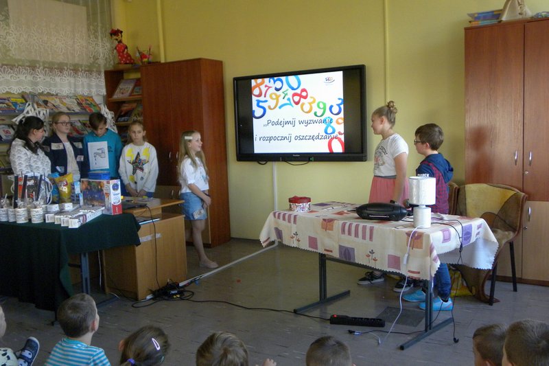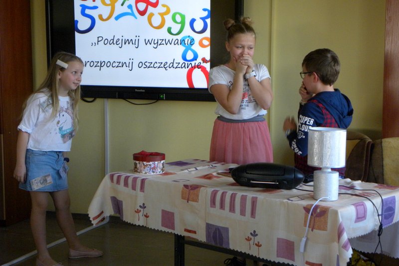 Dużym zainteresowaniem cieszyło się przedstawienie teatralne pt. "Podejmij wyzwanie i rozpocznij oszczędzanie" - scenki z codziennego życia, w których Bankówka przekonywała dzieci do oszczędzania nie tylko pieniędzy, ale i wody, prądu czy zdrowia. Inscenizację przygotowali uczniowie uczęszczający na zajęcia koła teatralnego pod kierunkiem Jacka Zycha oraz uczennice z koła SKO "Kto nie chce wiedzieć, co to jest nędza – niech razem z nami od dziś oszczędza". Po zakończonym przedstawieniu uczniowie nagrodzili młodych artystów oraz laureatów konkursu gromkimi brawami.