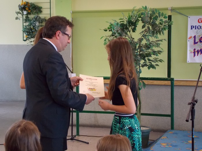 Wszyscy uczestnicy otrzymali z rąk dyrektora ZS w Korczynie Artura Stodolaka pamiątkowe dyplomy. Zdobywcy I, II i III miejsca oraz wyróżnień zostali nagrodzeni książkami do nauki języka angielskiego oraz kubkami i długopisami z logo konkursu „Let’s Sing in English”. Na wszystkich uczestników konkursu czekał słodki poczęstunek ufundowany przez Delikatesy Centrum z Leska oraz Olszanicy. Serdecznie gratulujemy wszystkim wykonawcom i życzymy dalszych sukcesów.