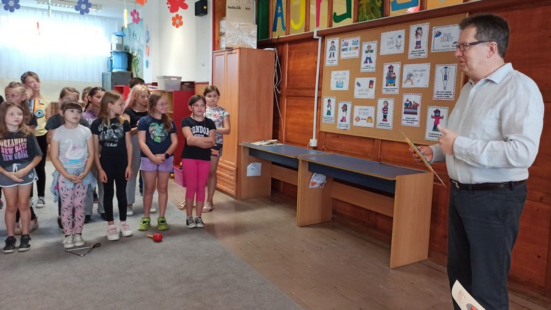 W krośnieńskim artKinie poszukiwaliśmy skarbu wraz z Mikołajkiem. Panowie policjanci przypomnieli nam o zasadach jakie należy przestrzegać, aby bezpiecznie spędzać czas wolny, a Gniewko Skrzysiński umilił nam czas porcją egzotycznej muzyki. Ostatni dzień to rozstrzygnięcie konkursów oraz krótki program artystyczny. Kilka słów podziękowań i z odrobiną smutku, że to już za nami zakończyliśmy tegoroczną półkolonię. Myślami jesteśmy już z przy kolejnej. Do zobaczenia za rok