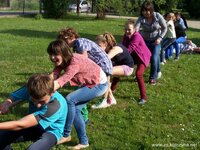 Młodzież, korzystając z pięknej pogody, grała w piłkę, śpiewała piosenki przy akompaniamencie gitary i próbowała swych sił przy przeciąganiu liny. Wspaniała zabawa zakończyła się o 19.30., gdy trzeba było wracać do domu. Pani Kazimiera Wajda podziękowała uczniom i opiekunom z Korczyny za wspólnie spędzony czas i podkreśliła ważność podtrzymywania tradycji spotkań. Kolejne już za kilka miesięcy- do zobaczenia!